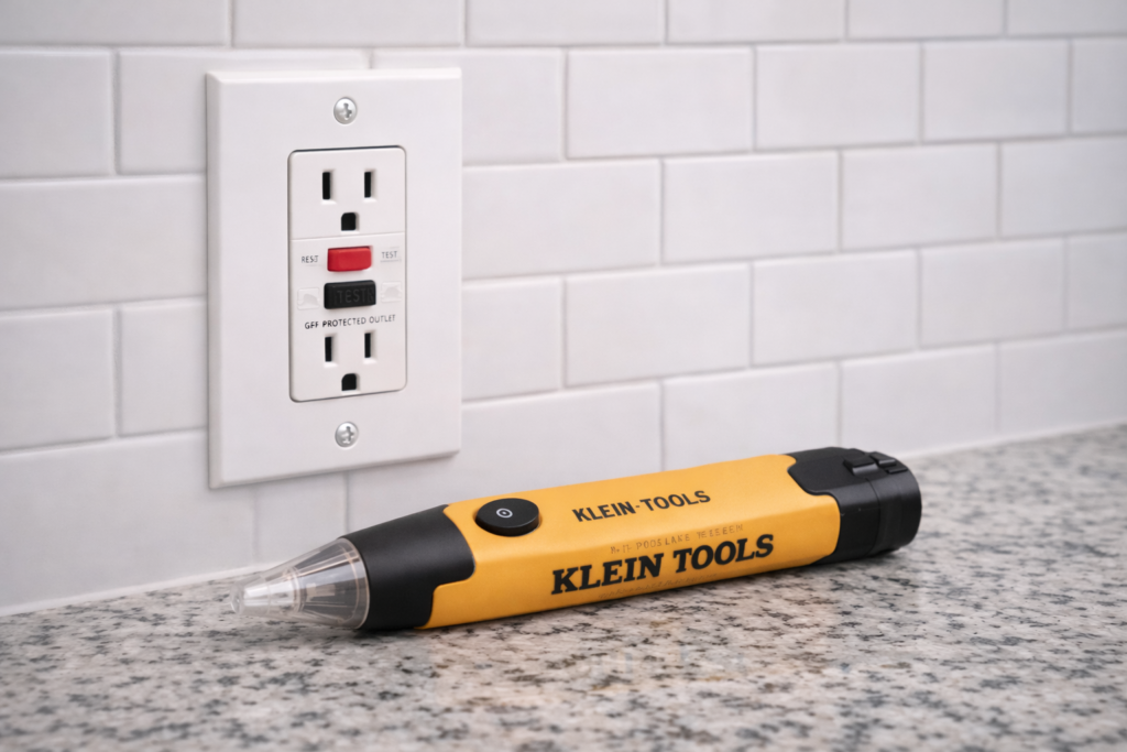 Beginner-safe electrical troubleshooting with a GFCI outlet and non-contact voltage tester