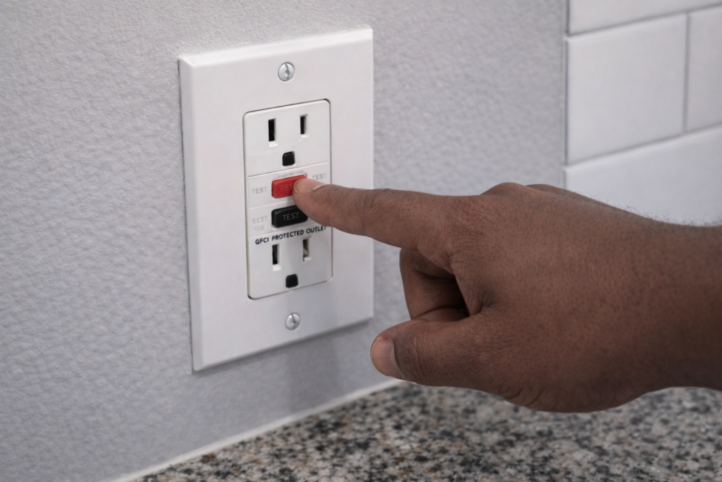 A GFCI that won’t reset often needs replacement or further inspection. These issues are not beginner-safe and should be handled by a licensed electrician.