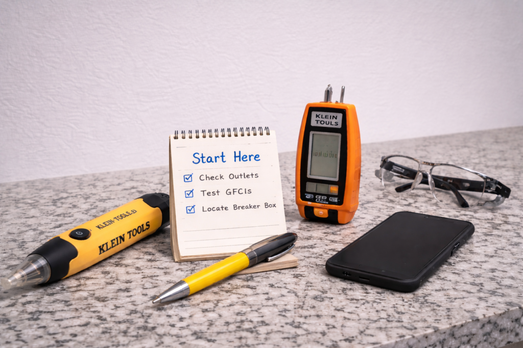 Beginner-safe electrical troubleshooting starting point with basic tools and checklist